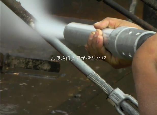 本机的特点是: 水和磨料在喷砂罐内混合,然后通入高压空气作为动力,形成水气砂的混合体,然后通过一根喷砂管经喷砂枪喷射出去,