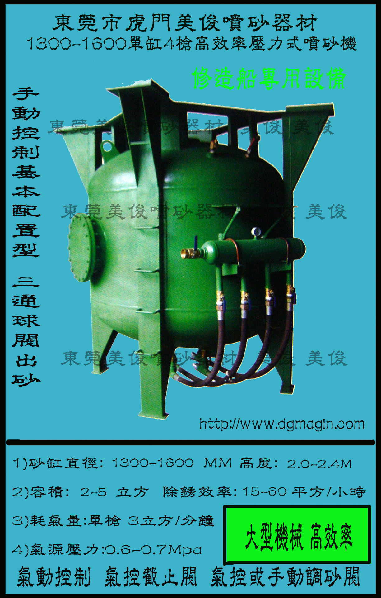 1300-1600单缸4枪压力式喷砂机(手动基本型)