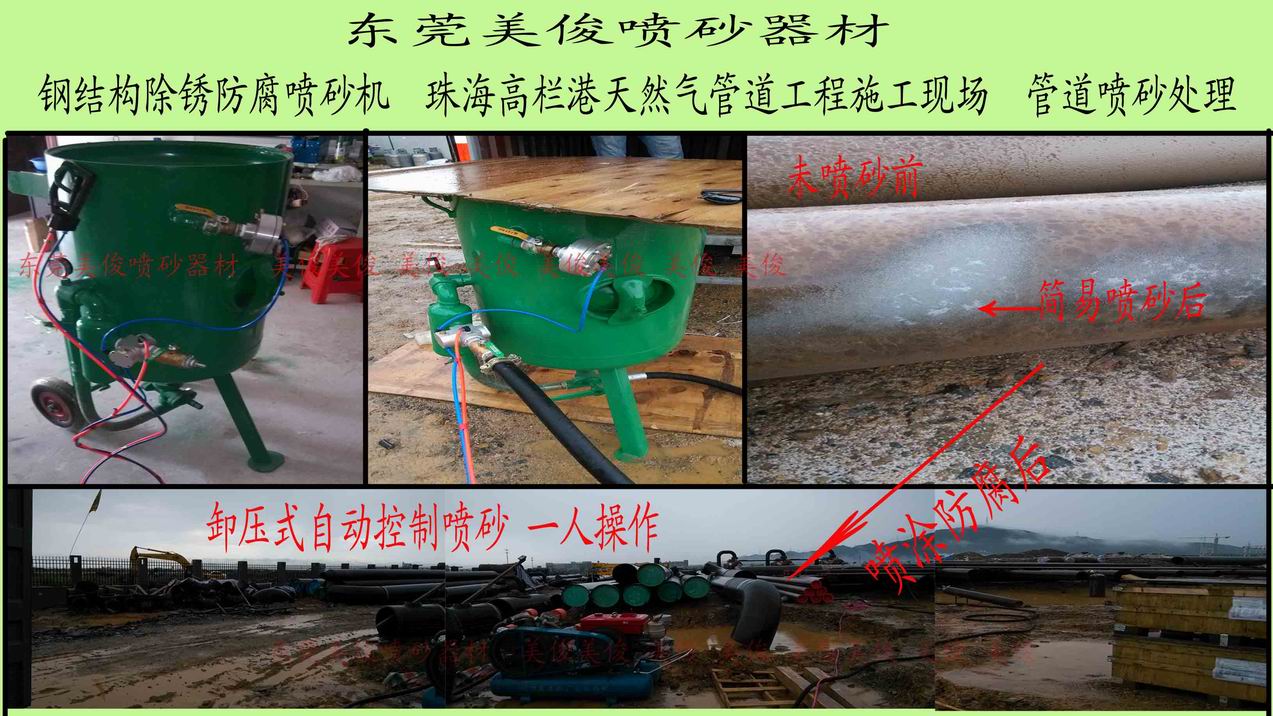 砂罐在喷砂工作时,罐内压力为工作压力,停机自动排气,罐内压力为0,适合长时间的大面积喷砂.