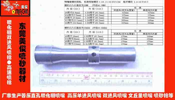 双进风喷砂枪的喷砂面积比标准单进风的喷砂面积大35%,喷砂介质的出口速度有降低。