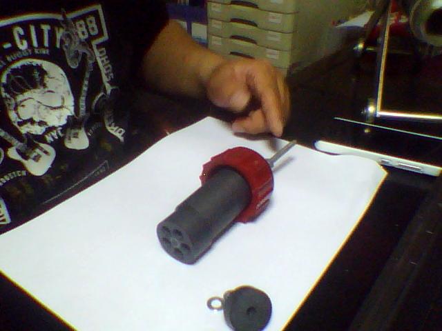 第四步:把红色的喷枪螺纹盖装上去.