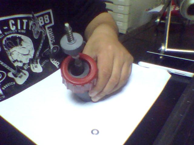 第五步:上一个螺母---上一个散沙头---加个垫片---上弹簧-加垫片(可不加)--上螺母.