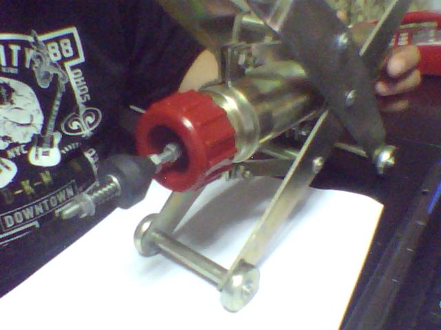 第一步:先把螺杆和分砂器装好,把螺杆穿入分砂器,两头用螺母拧紧.