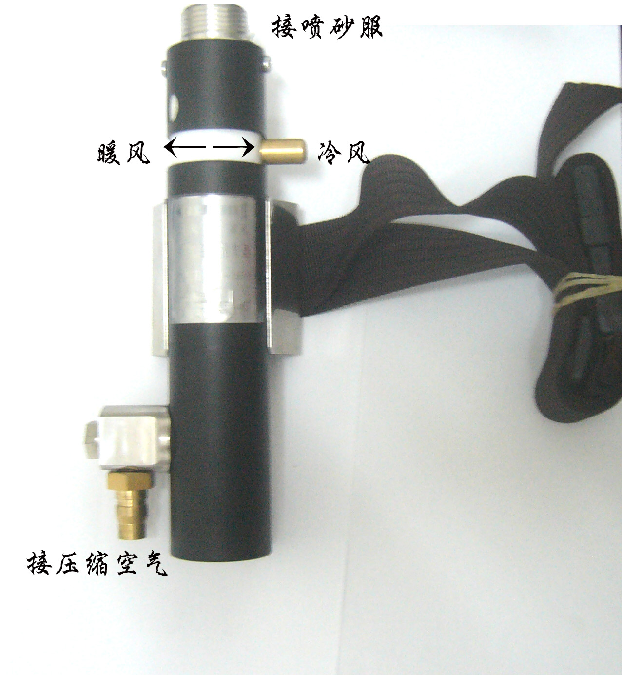 空气温度调节器以过滤后的压缩空气为能源,经过手柄调节可以得到温度适中,感觉舒适的呼吸空气,当压缩空气压力为0.4-0.7MPa时,调节温度范围为10℃-40℃。