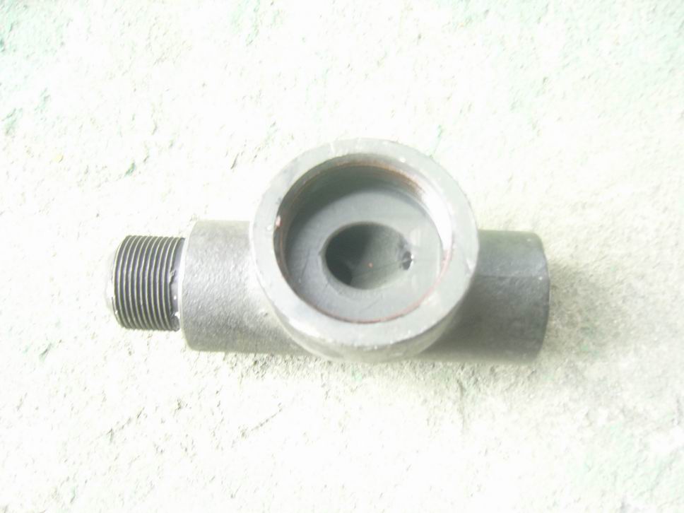 3)加厚出砂三通 上为2寸内牙(通用水管牙) 前为外牙1.2寸,接砂缸接头或转换接头, 后为1.2寸内牙,接供气管